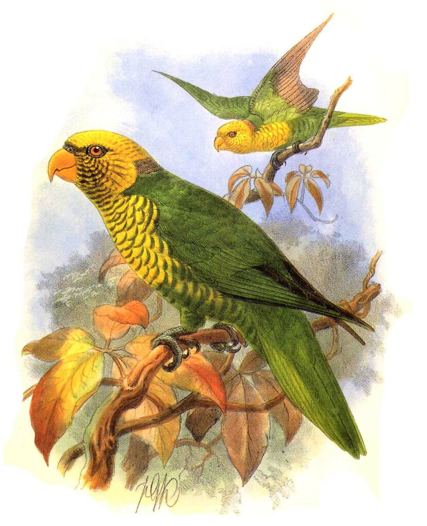Ordre : Psittaciformes Famille : Psittaculidés Espèce : Loriquet jaune et vert