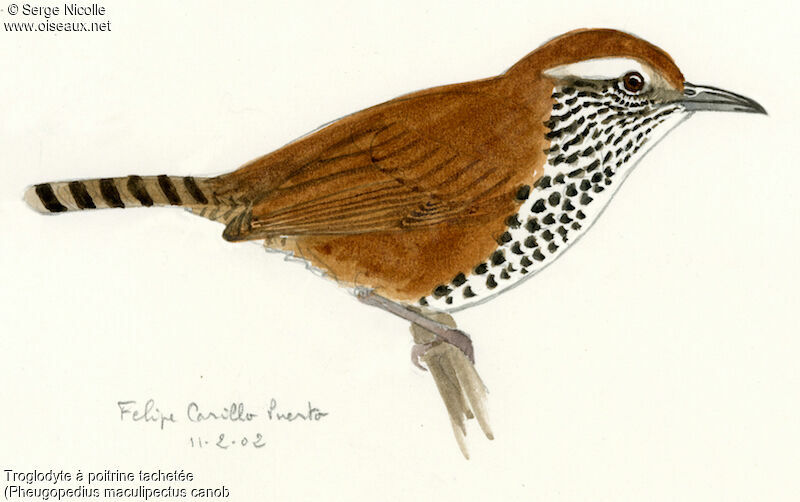Ordre : Passériformes Famille : Troglodytidés Espèce : Troglodyte à poitrine tachetée